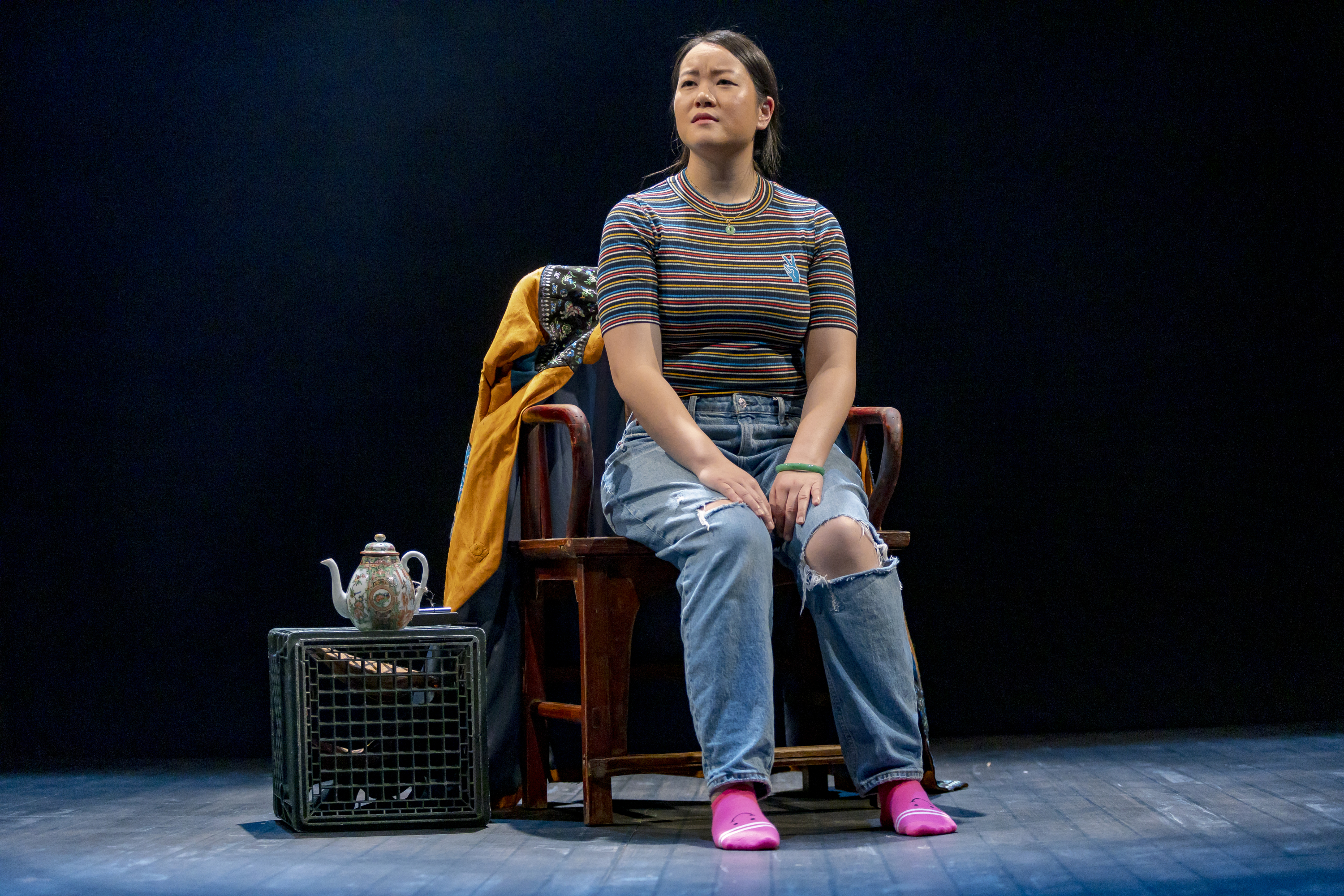 The Chinese Lady is suitable for ages 13 and up. As Afong Moy tells her story, she doesn’t shy away from authentic and unfiltered descriptions of historical violence and cultural exotification.