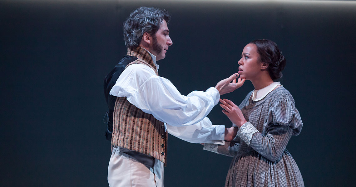 This month, actress Margaret Ivey moves into the spotlight as Jane Eyre in Polly Teale’s adaptation of Charlotte Brontë’s classic novel, under the direction of Playhouse Associate Artist KJ Sanchez. She brings to life the beloved literary heroine in a production that echoes the novel’s thrilling and psychological drama. The show is nuanced and stylized, allowing the audience to see the story through a new perspective.