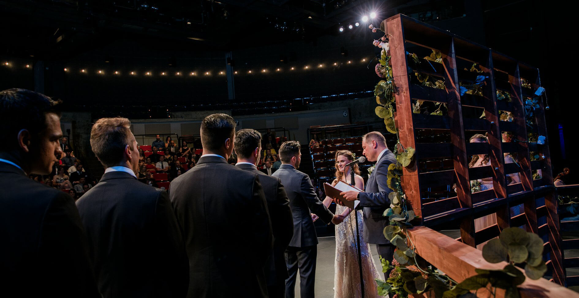 “I do” may be the most romantic lines ever spoken on our stages! We’re thrilled to host weddings at the Playhouse and to help set the scene for a couple’s very first moments as married partners. See how couples in the past have sealed their love with their wedding at the theatre.
